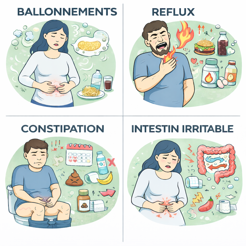 Ballonnements, reflux, douleurs abdominales, constipation, diarrhées, fatigue après les repas, inconfort chronique… Les troubles digestifs sont très fréquents, souvent banalisés, alors qu’ils traduisent un déséquilibre réel du système digestif et intestinal.